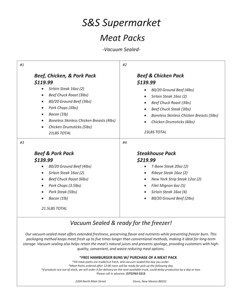 Looking for convenience without compromising quality? Our vacuum-sealed meat packs keep your meats fresh and ready to cook or freeze, offering long-lasting flavor and tenderness.